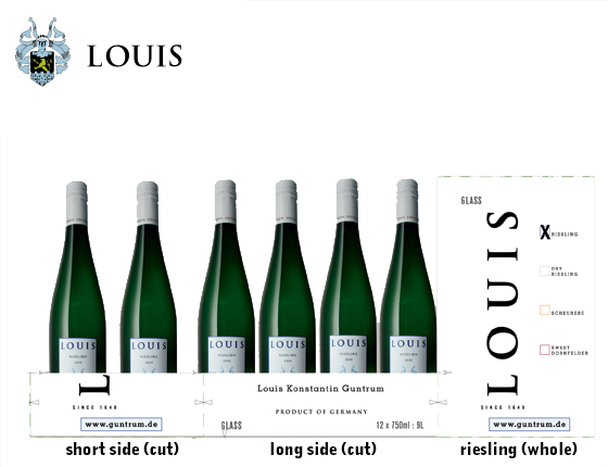 Louis Guntrum Winery is located in Nierstein, Germany overlooking the Rhine River. This small, family owned and operated winery has been operated by the Guntrum family for 11 generations. The winery was occupied by Gen. G. Patton during WWII and used as the Allies central command as the war came to a close. In the winter of 2010, we began a re-design of Guntrum's middle tier of wines, LOUIS. New labels for each of the 4 varietals were designed as well as a universal case to ship all 4 wines. The new sell sheets are also on display here.